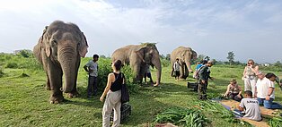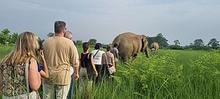 Dschungelsafari im Chitwan-Nationalpark mit Sichtung badender Nashörner und anschließendem Frühstück zwischen Elefanten