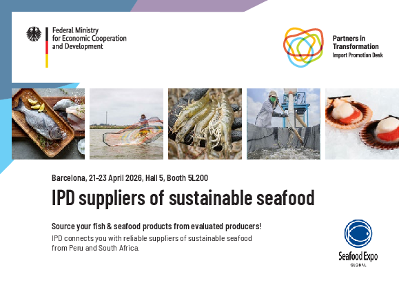 The IPD showcases carefully evaluated companies from Peru and South Africa at the world’s largest trade fair for fish and seafood, offering products such as Paiche, rainbow trout, and Vannamei shrimp.